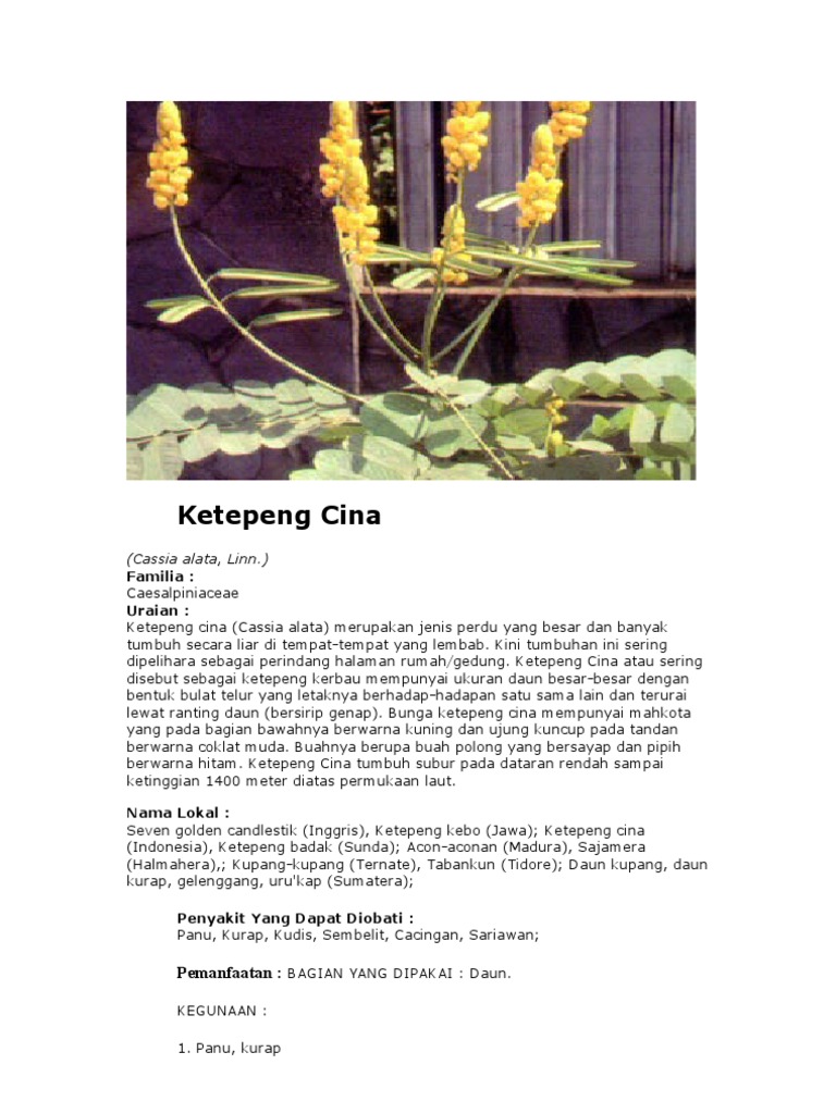 PDF) AKTIVITAS ANTIJAMUR EKSTRAK DAUN KETEPENG CINA (Cassia alata L.)