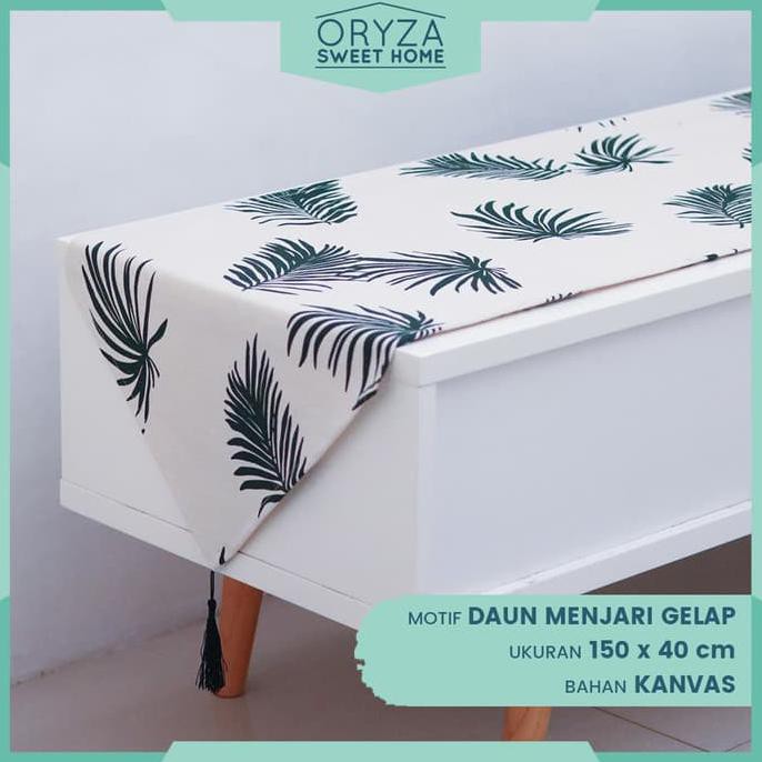 Taplak Meja Panjang Ruang Tamu Minimalis | Table Runner Mewah Modern Bahan Kanvas Tebal | Motif Daun Menjari Muda | Lazada Indonesia