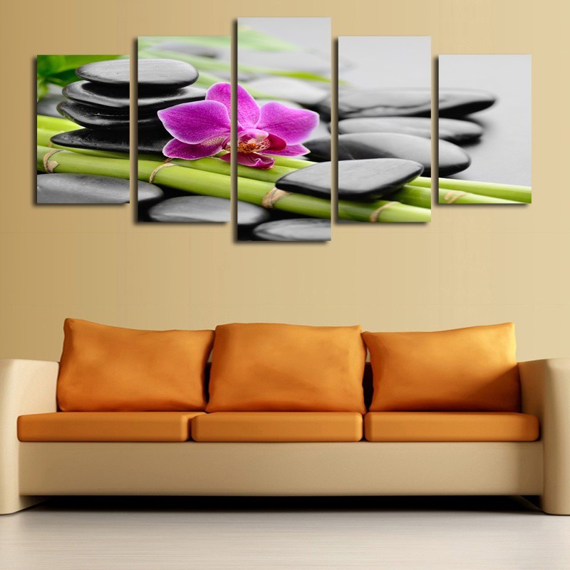 5pcs Lukisan/Gambar Batu Hitam Bunga Seni Cetak Kanvas Dekorasi Dinding Ruang Tamu Tanpa Bingkai | Shopee Indonesia