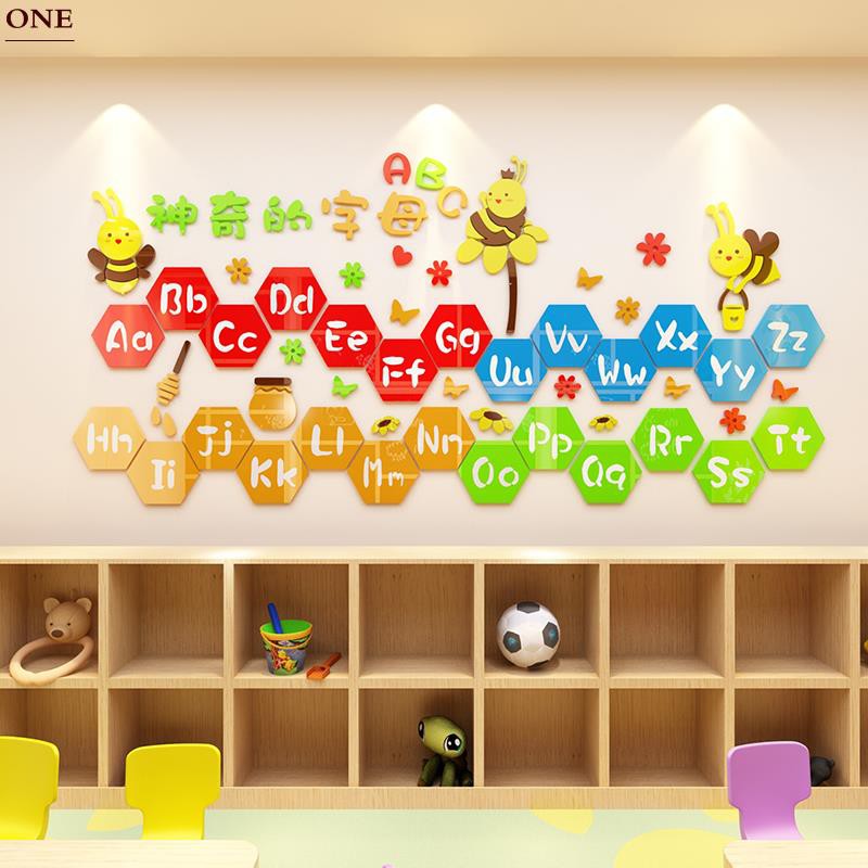 QT-Kartun alfabet 3d tiga dimensi stiker dinding, Bayi pendidikan awal kelas TK kelas tata letak dinding dekorasi kamar anak-anak | Shopee Indonesia