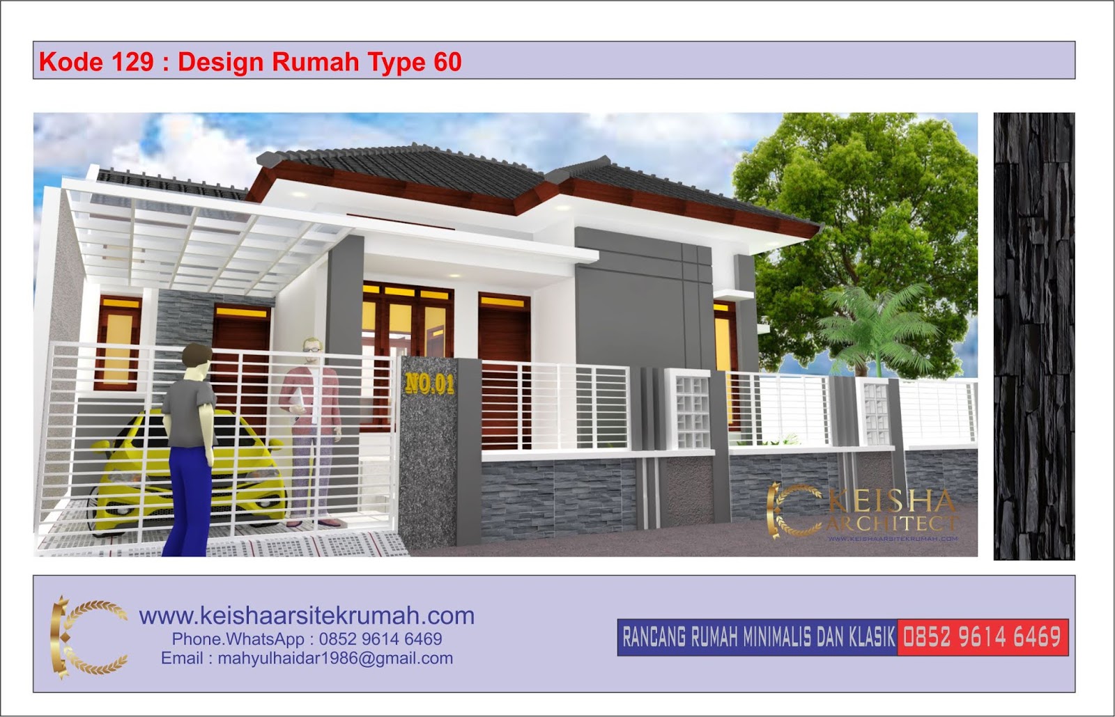 KODE 129 : DESAIN RUMAH TYPE 60 MINIMALIS LOKASI : BANDA ACEH | DESAIN RUMAH MINIMALIS. KLASIK DAN RAB TAHUN 2020 WWW.KEISHAARSITEKRUMAH.COM