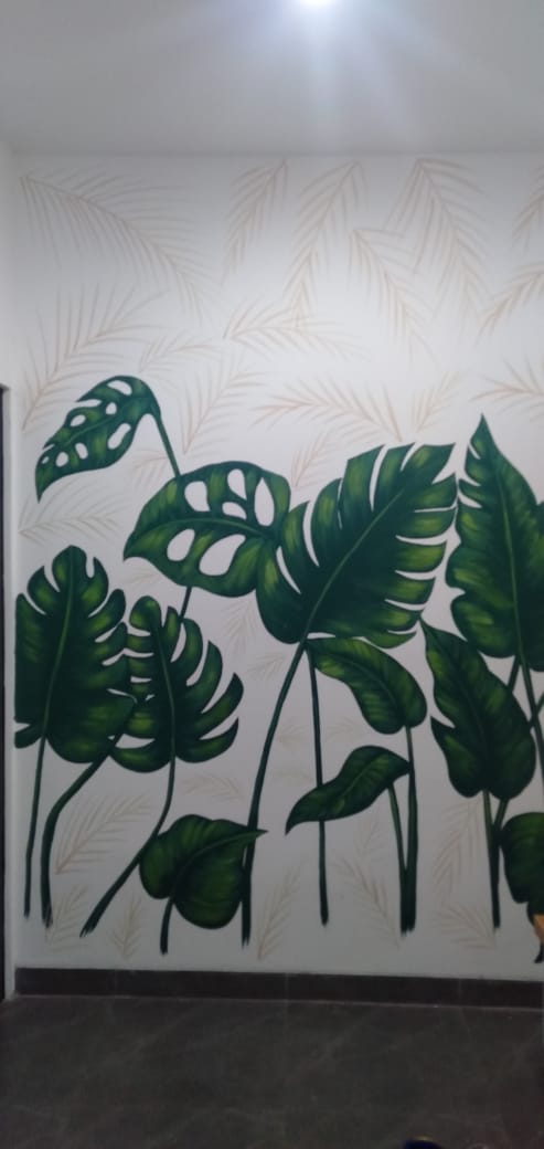 Lukis Dinding/Mural Daun di House Fit and Fun, Bintaro - Jasa Lukis Dinding Mural 3D Jakarta Murah dan Profesional
