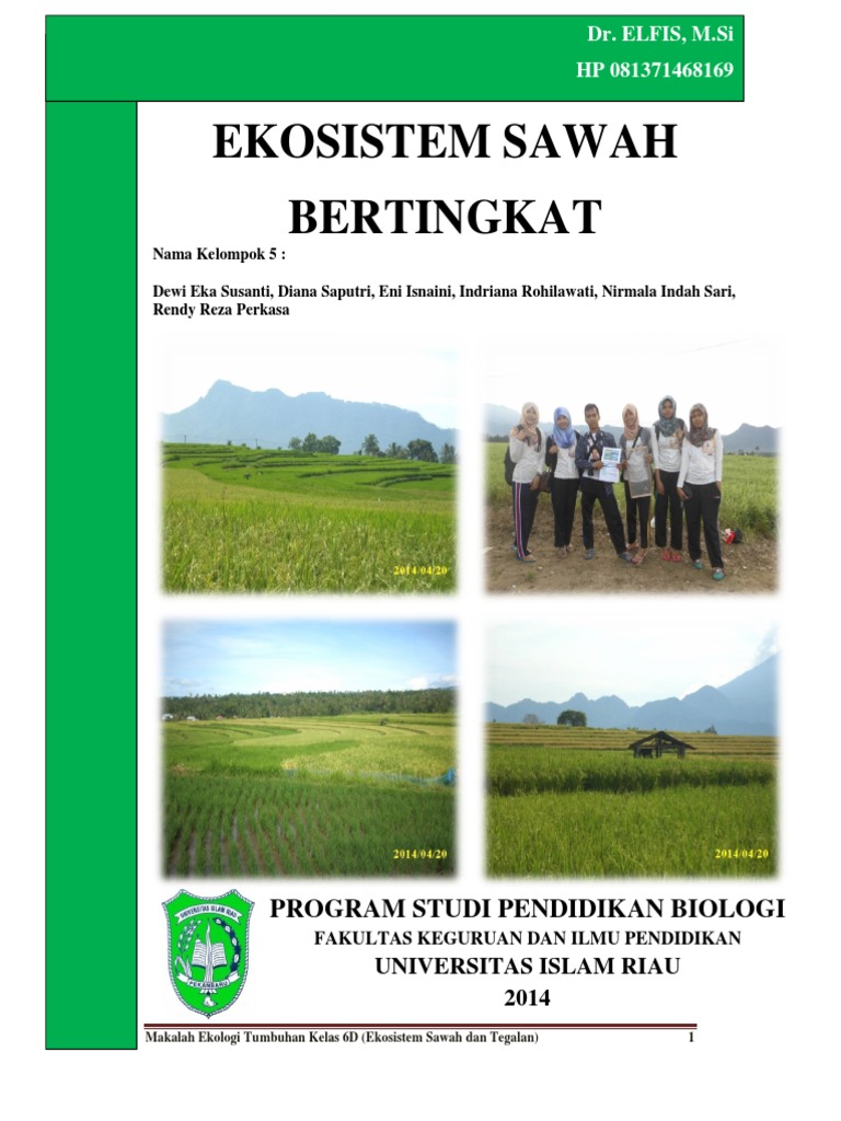 EKOSISTEM SAWAH BERTINGKAT 6C: MAKALAH LAPORAN PRAKTIKUM LAPANGAN