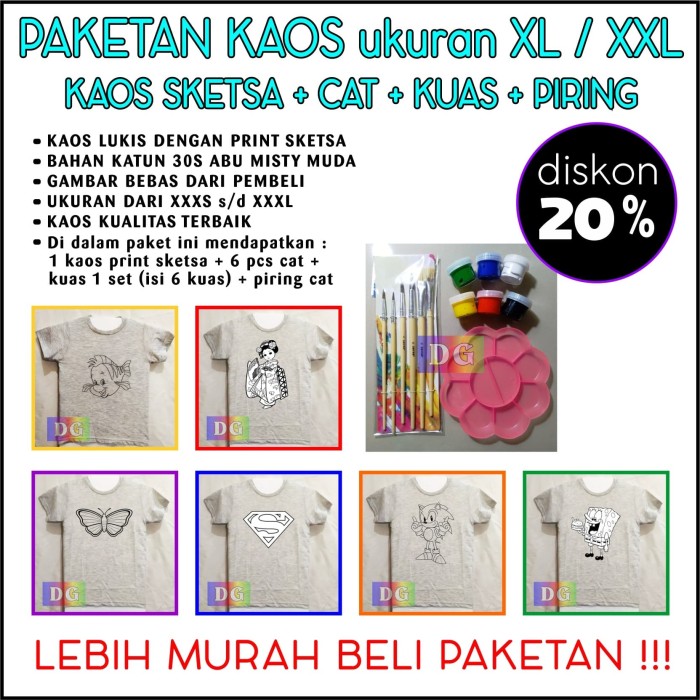 Jual Paketan Kaos Lukis Dengan Sketsa Gambar Siap Diwarnai - size XL / XXL - Kota Tangerang - DG Toko | Tokopedia