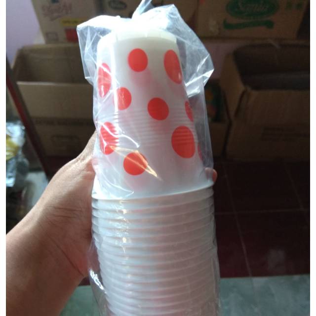gelas plastik bola ondel polkadot merah cup 200ml | Shopee Indonesia
