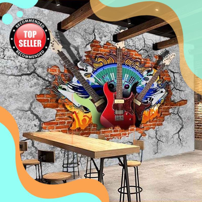TERBARU Kustom 3D Mural Wallpaper Gitar Batu Seni Grafiti Rusak Dinding Bata KTV Bar Perkakas Rumah | Shopee Indonesia