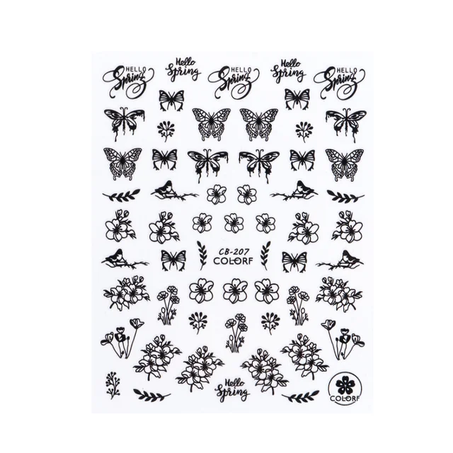 3D Hitam Putih Emas Butterfly Kuku Stiker Hollow Bunga Tanaman Huruf Daun Hewan Slider Penuh Bungkus Musim Panas Dekorasi SACB198 212|Stiker & Stiker| - AliExpress