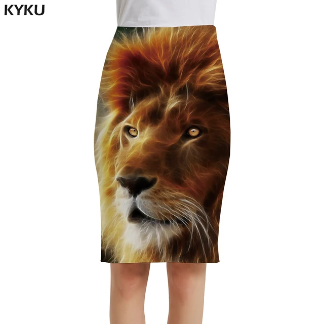 KYKU Lion Rok Wanita Hewan 3d Rok Abu abu Pensil Grafiti Cetak Rok Seni Kantor Wanita Rok Wanita Musim Panas Keren Korea baru|Rok| - AliExpress