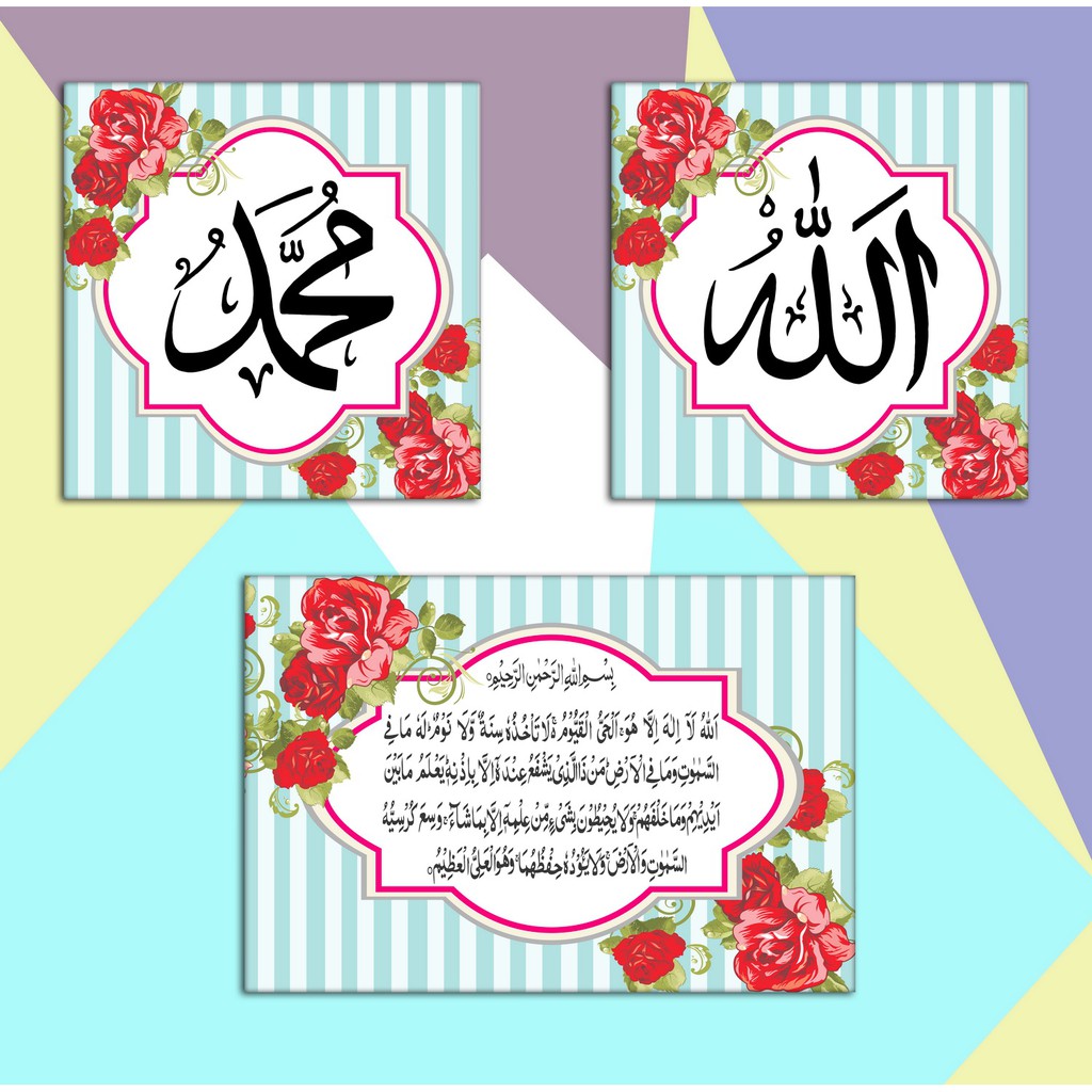 Hiasan Dinding Kaligrafi Islam-Dekorasi Rumah Shabby-Lafadz ALLAH MUHAMMAD Dan Ayat Kursi-LKM30 | Shopee Indonesia