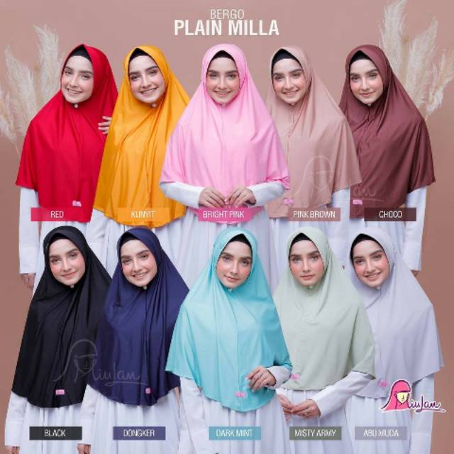 BERGO PLAIN MILLA | JILBAB MIULAN TERBARU | KERUDUNG INSTAN POLOS | JILBAB SIMPLE | JILBAB DEWASA | Shopee Indonesia
