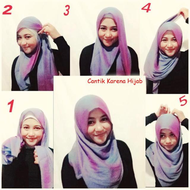 Gambar Tutorial Hijab Segi Empat Untuk Muka Bulat | Gaya hijab, Hijab, Kerudung