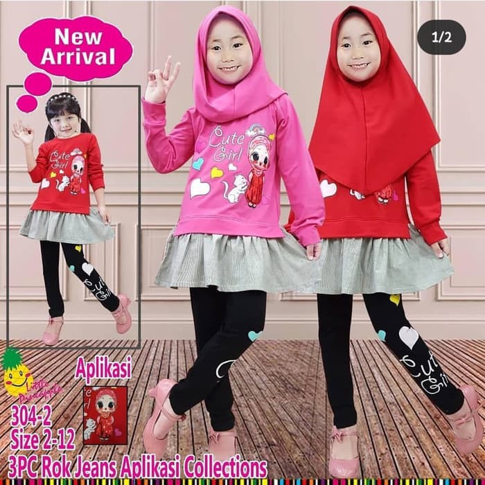 Baju Muslim Anak Lp Motif Cute LED Nyala Warna Pink & Merah Dan Legging Anak Warna Hitam Gr | Shopee Indonesia