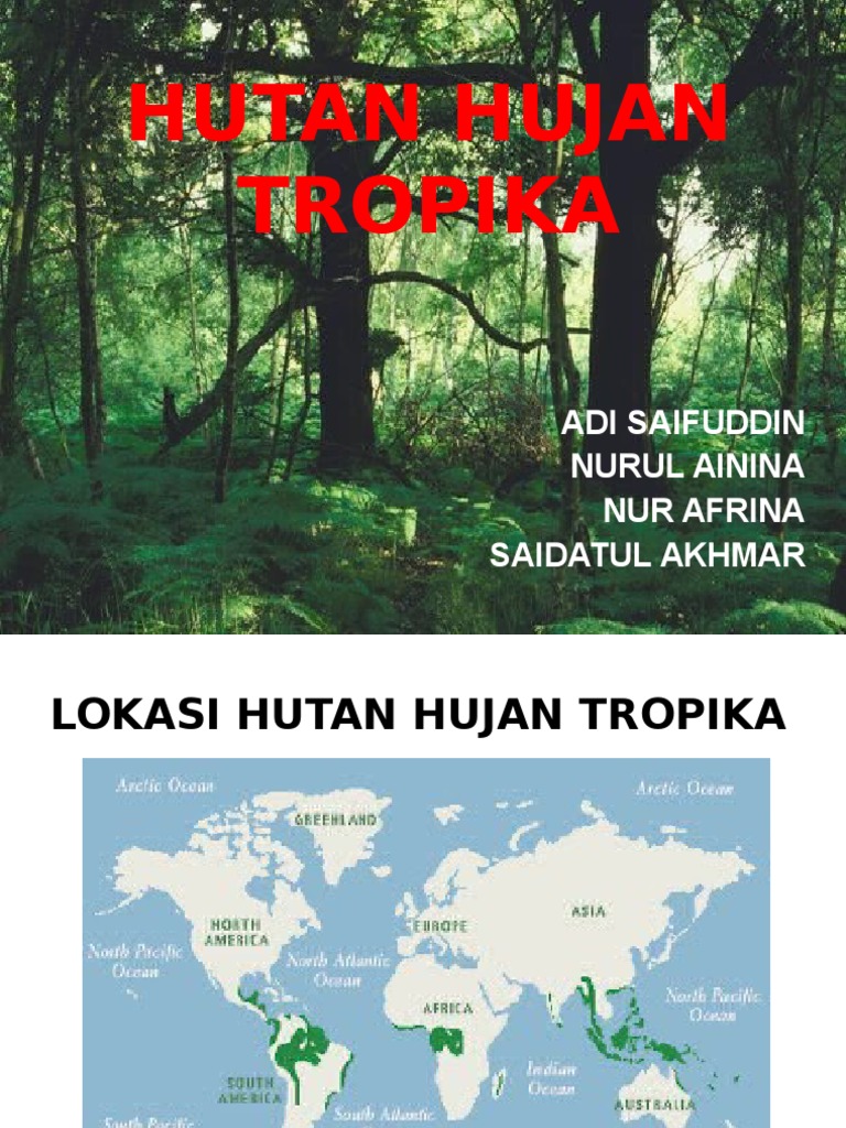 Pengertian Hutan Hujan Tropis Hutan hujan tropis atau yang juga dikenal sebagai hutan basah biasanya terdapat di daerah tropika. Daer… | Hutan hujan, Tropis, Hutan