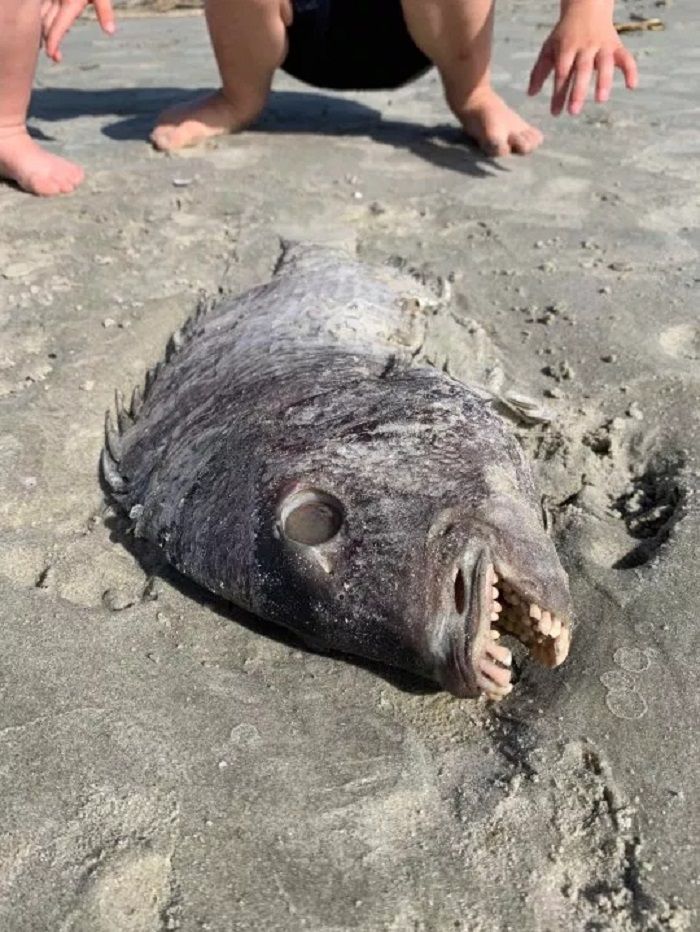 HEBOH! Ditemukan Ikan Bergigi Manusia dan Bersisik Tebal di Pantai, Ini Penampakannya - Halaman all - Warta Kota