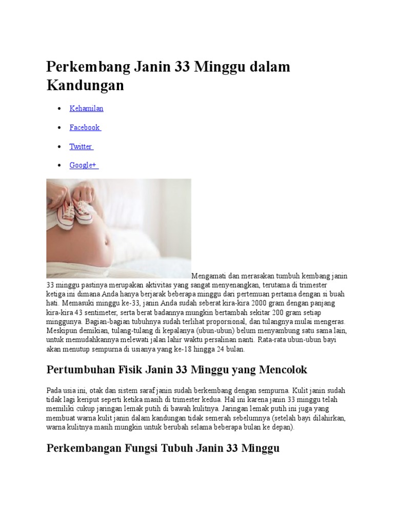 Perkembangan Janin Usia Kandungan 33 Minggu - Jurnal Keluarga