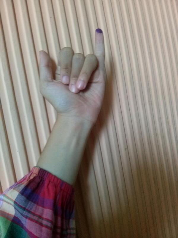 alfiyah luluk on Twitter: “Habis nyoblos ,ayo nyanyi salam 2 jari http://t.co/i0KUCJu5oD”