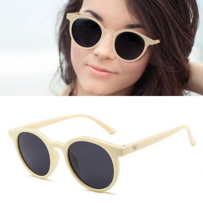 KACAMATA HITAM RETRO FRAME BULAT KEREN UNTUK WANITA WARNA CREAM | Shopee Indonesia