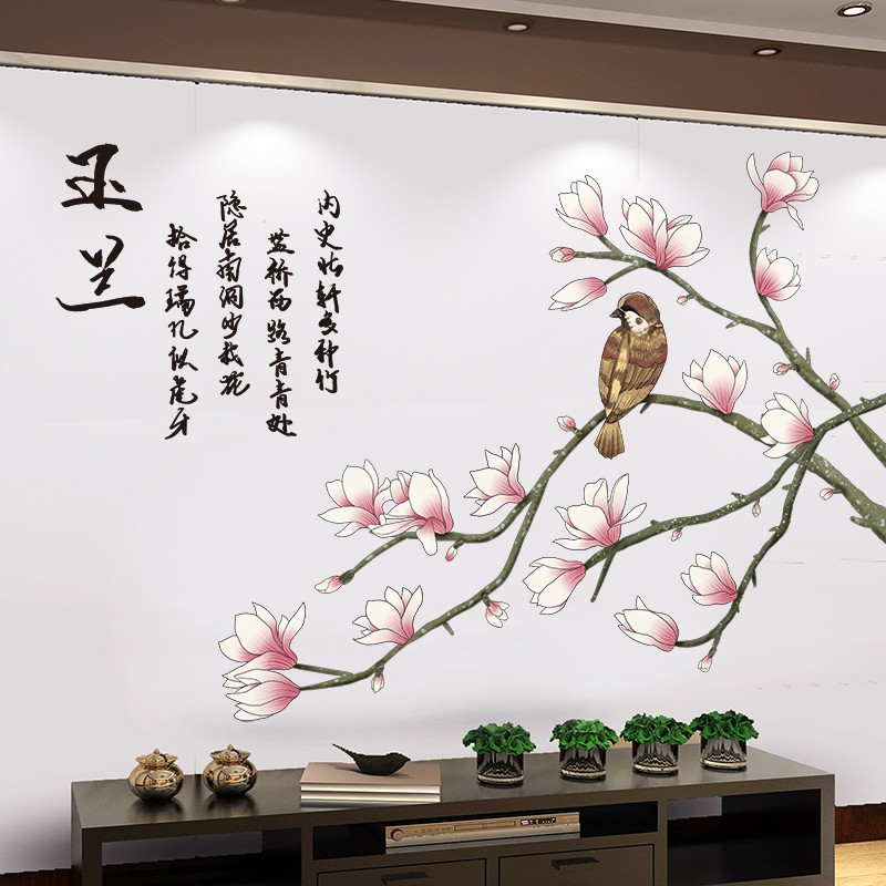 Latar belakang ruang tamu hiasan dinding, Gaya cina stiker, Kaligrafi cina dan lukisan lukisan dinding, Stiker dinding menancapkan, Magnolia gambar burung stiker dinding | Shopee Indonesia
