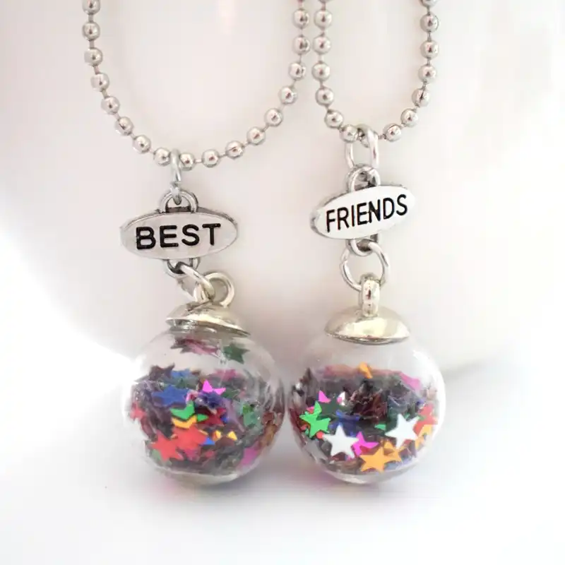 Bintang Glitter Transparan Bola Kaca Kalung Anak anak Terbaik Teman BFF 2 Kalung Persahabatan Perhiasan Hadiah untuk Anak anak 2 Pcs/set| | - AliExpress