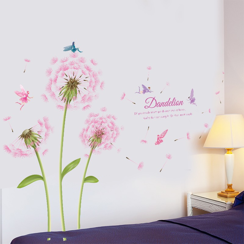 Romantis merah muda dandelion stiker dinding, Kamar cewek, Stiker samping tempat | Shopee Indonesia