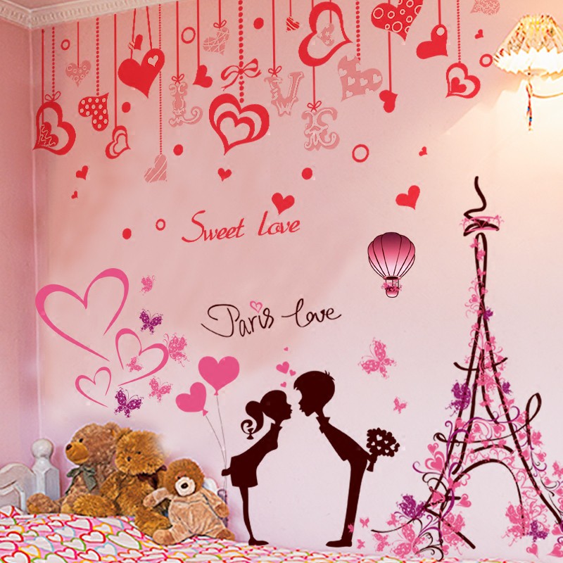 Kreatif hangat romantis stiker kamar tidur samping tempat tidur menancapkan stiker dinding kamar cewek hiasan dinding latar belakang wallpaper wallpaper | Shopee Indonesia