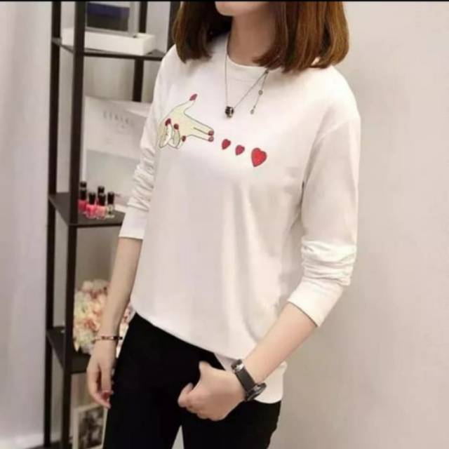 Promo-kaos wanita lengan panjang-kaos motif love sablon-kaos spandek-kaos korea | Shopee Indonesia