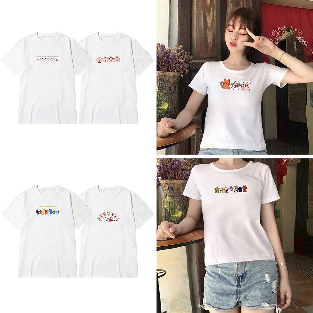 Kaos T-Shirt Wanita dengan Model Potongan Longgar dan Bahan Katun Gambar Kartun Bergaya Chic Korea | Shopee Indonesia