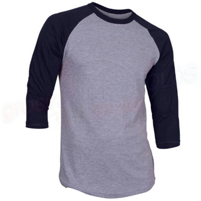 Kaos raglan polos 3/4,Raglan polos,kaos reglan polos.3/4 Bahan Katun Warna Abu-Abu Lengan Biru Dongker Size M,L,Xl | Lazada Indonesia