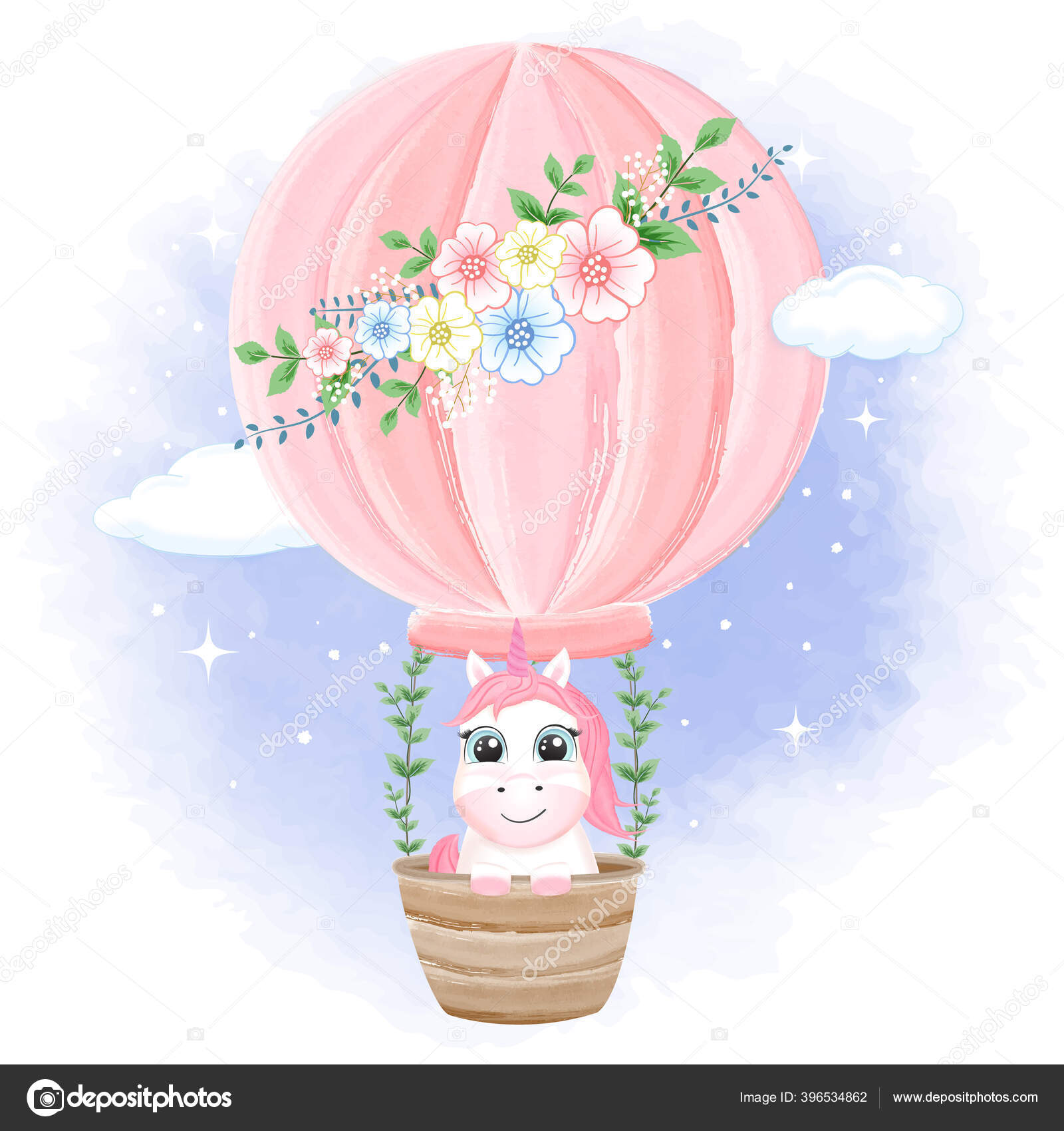 Bayi Unicorn Balon Udara Gambar Tangan Kartun Gambar Gambar Gambar — Stok Vektor © keath369 #396534862