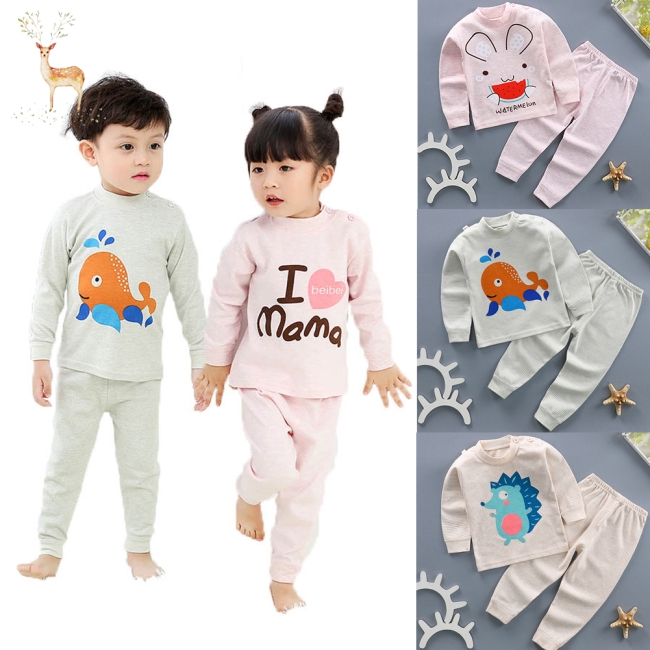 Setelan Piyama Katun Bayi Laki-laki / Perempuan Lengan Panjang Gambar Kartun + Celana | Shopee Indonesia