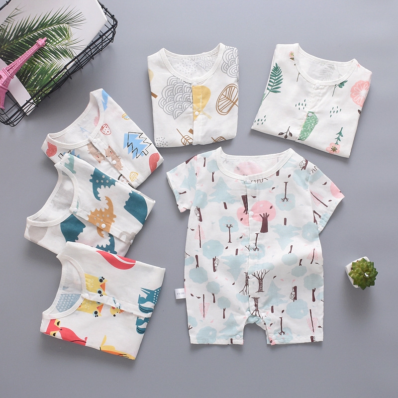 Romper Katun Tipis Bayi Laki-laki/perempuan Lengan Pendek Gambar Kartun | Shopee Indonesia