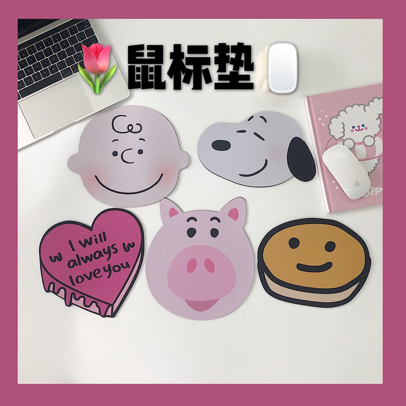 Gaya korea ins dengan desain yang sama lucu kartun gadis hati merah muda cinta babi babi lucu mouse pad PVC | Shopee Indonesia
