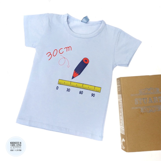 KBD 0237 -4 Baju Kaos sablon Gambar kartun alat tulis pensil biru abu kuning salem Anak Cowo 1234tH | Shopee Indonesia
