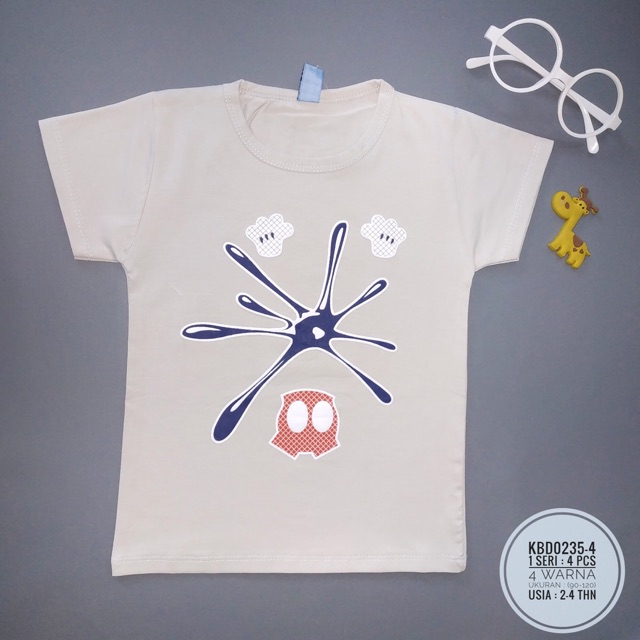 KB/CD 0235 -4 Baju Kaos Anak Cowok gambar kartun mickey warna biru kuning salem abu 1234567tahun | Shopee Indonesia
