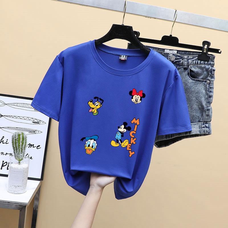 Kaos T-Shirt Casual Wanita dengan Potongan Longgar dan Gambar Kartun Warna Biru untuk Musim Panas | Shopee Indonesia