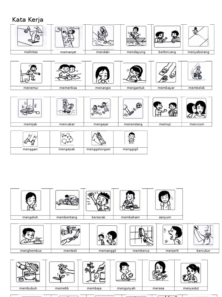 Image result for contoh kata kerja bahasa melayu | Indonesian language, Malay language, Preschool activities