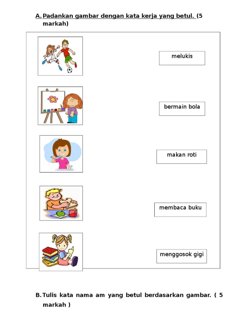 A. Padankan gambar dengan kata kerja yang betul. (5 markah): melukis