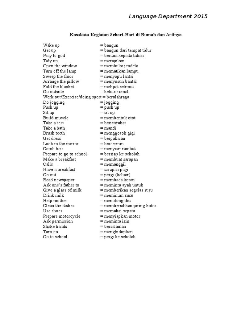 KOSAKATA BAHASA INGGRIS KEGIATAN SEHARI-HARI - Kampung Inggris Pare