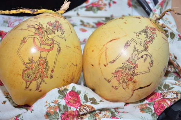 Seni ukir ( carving ) wayang pada kelapa untuk hajatan tingkepan ( 7 bulanan ) - YouTube