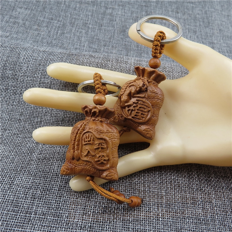 kepribadian kreatif gantungan kunci tiga-dimensi ukiran kayu mahoni kerajinan kecil beruntung tas | Shopee Indonesia