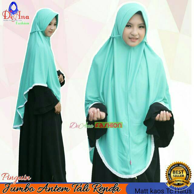 Jilbab kaos halus Pinguin Jumbo antem tali renda jilbab syar’i modern | Shopee Indonesia