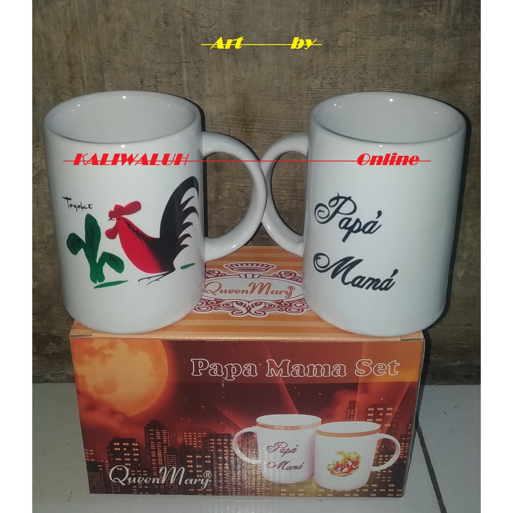 Gelas Minum Mug Cangkir isi 2 Pcs Motif Gambar/Nama Cap 200 ml QueenMary | Shopee Indonesia