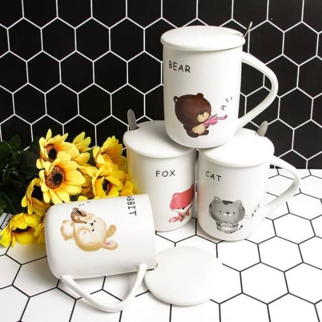 Mug Gelas Keramik Kopi Teh Gambar Hewan Lucu Unik Kucing Beruang Kelinci Kartun Lucu | Shopee Indonesia