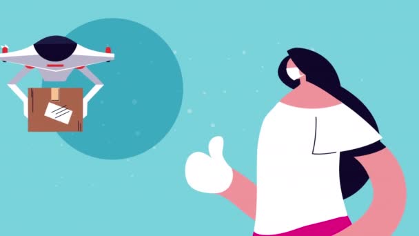 Layanan pengiriman pekerja dengan kotak dalam animasi drone — Stok Video © djv #382126494