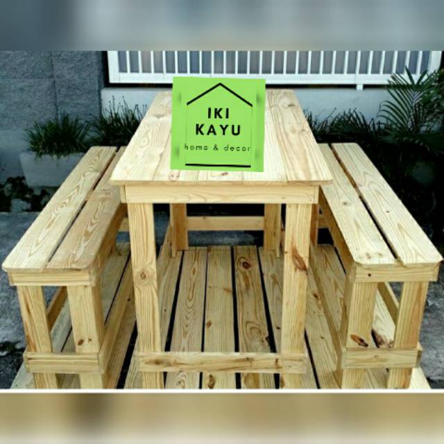 Meja kursi kayu pinus, palet jati belanda cafe warung warkop - Mebel - 797141062