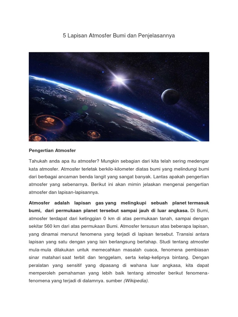 sebutkan lapisan lapisan atmosfer beserta penjelasannya! - Brainly.co.id