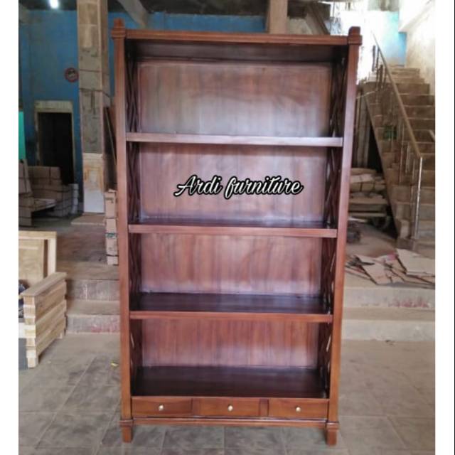 Jual Rak buku kayu jati lemari tempat buku pajangan ukir jepara - Kab. Jepara - Ardi Furniture Jati | Tokopedia