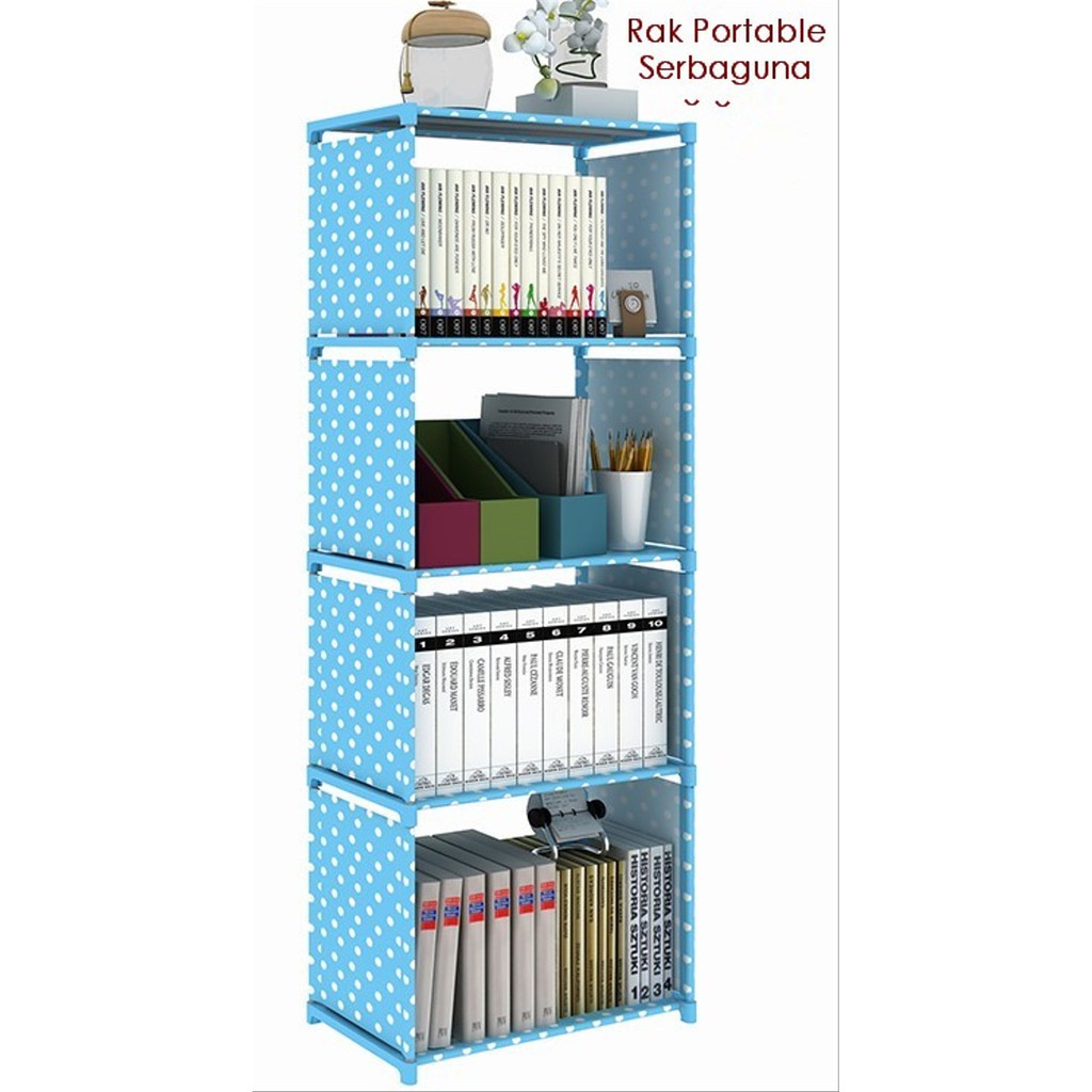 RAK BUKU BIRU POLKADOT RAK SERBAGUNA 4 SUSUN 5 TINGKAT Rak Buku Portable Minimalis Organizer Lemari Tempat Simpan Buku | Lazada Indonesia