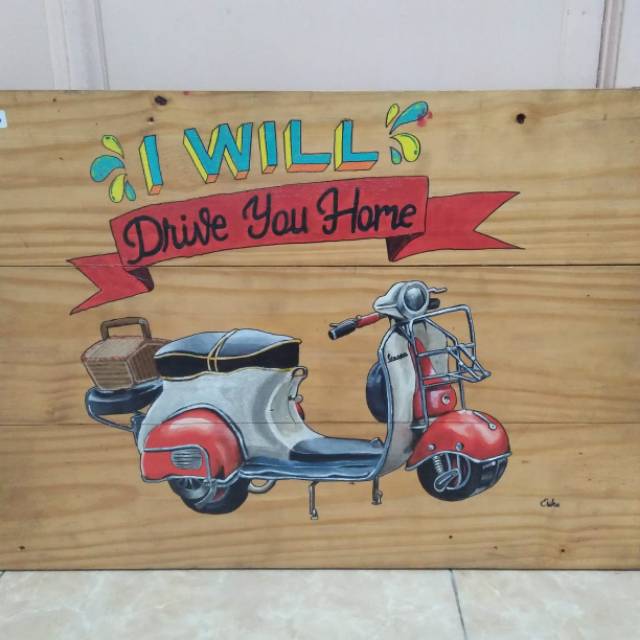 Jual Hot Sale Lukisan Dinding Poster Kayu Rustic Artistic18 Vespa Merah D1706015 di lapak citrastore citrastore13