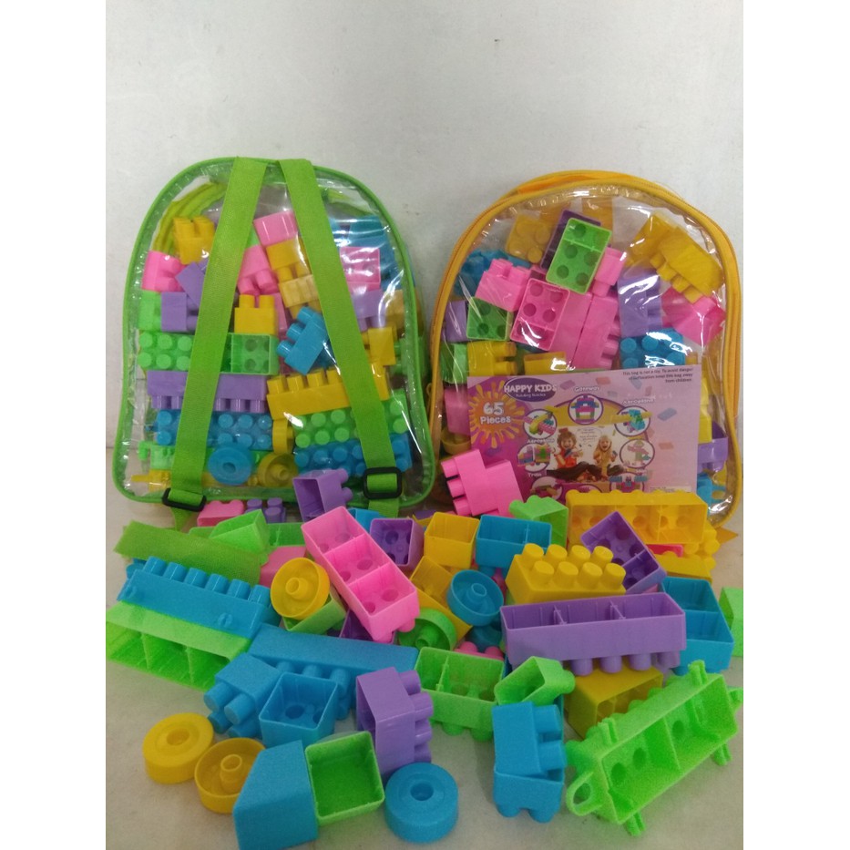 Happy Kids 65pcs Mainan Anak Balok Bongkar Pasang Lego Bingkisan Tas Terlaris | Shopee Indonesia
